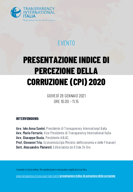 Presentazione Indice di Percezione della Corruzione (CPI) 2020