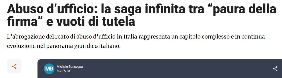 Abuso d'ufficio: la saga infinita tra "paura della firma" e vuoti di tutela
