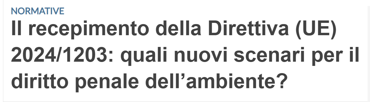 Il recepimento della Direttiva (UE) 2024/1203: quali nuovi scenari per il diritto penale dell'ambiente?