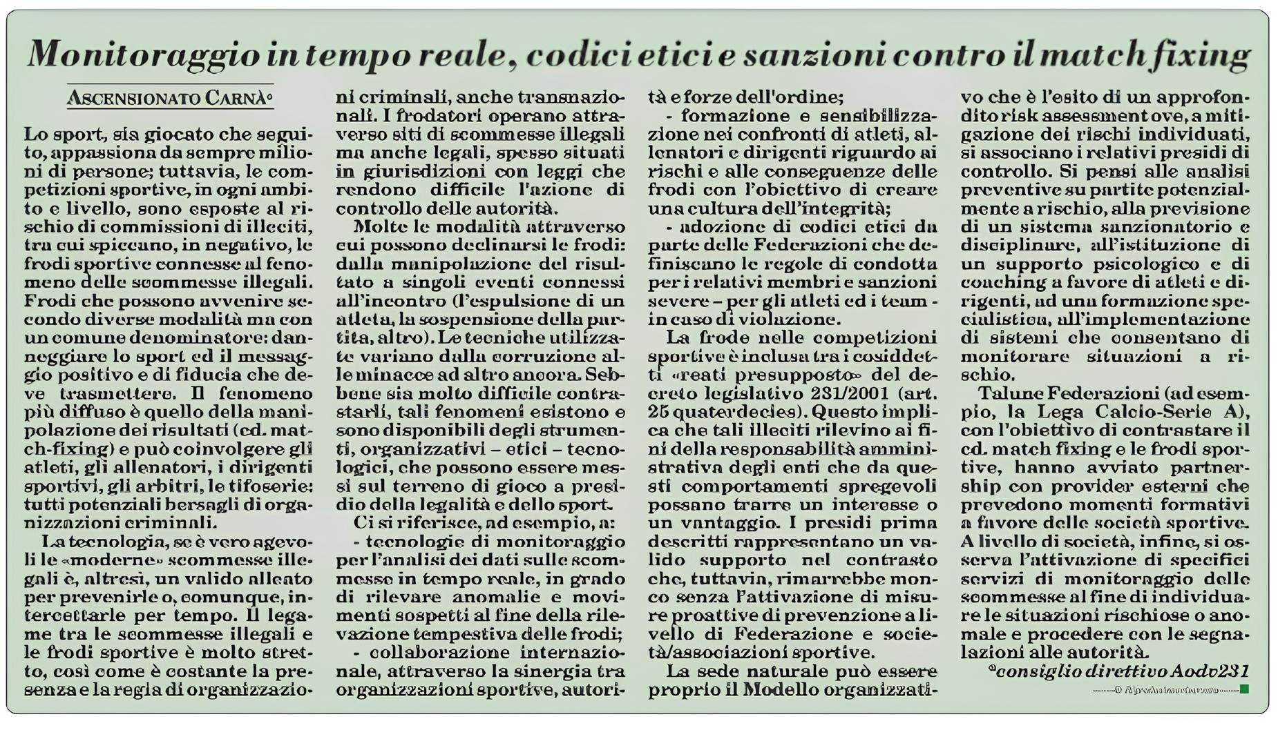 ItaliaOggi.it - Monitoraggio in tempo reale, codici etici e sanzioni contro il match fixing