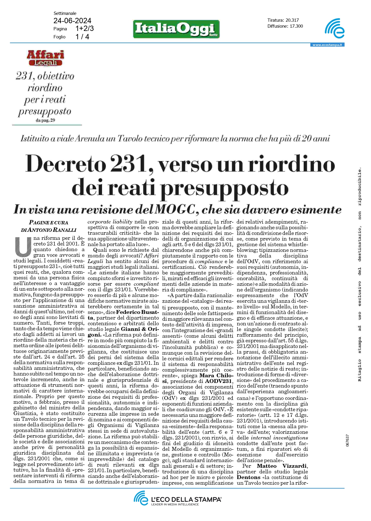 ItaliaOggi Sette - Decreto 231, verso un riordino dei reati presupposto