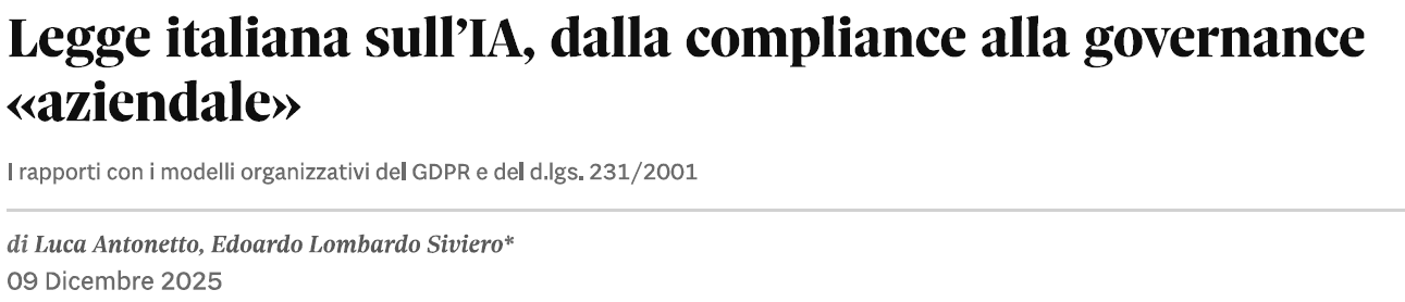 Ntplusdiritto.ilsole24ore.com - Legge italiana sull'IA, dalla compliance alla governance "aziendale"